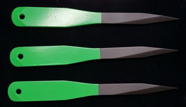 Precision engineered and machined (not ground) to provide consistent performance for instinctive throwing. We start with a software design, focusing on balance point, length and weight. Implementation error is typically <0.5% from design parameters. We may not be consistent throwers, but we throw consistently made knives!